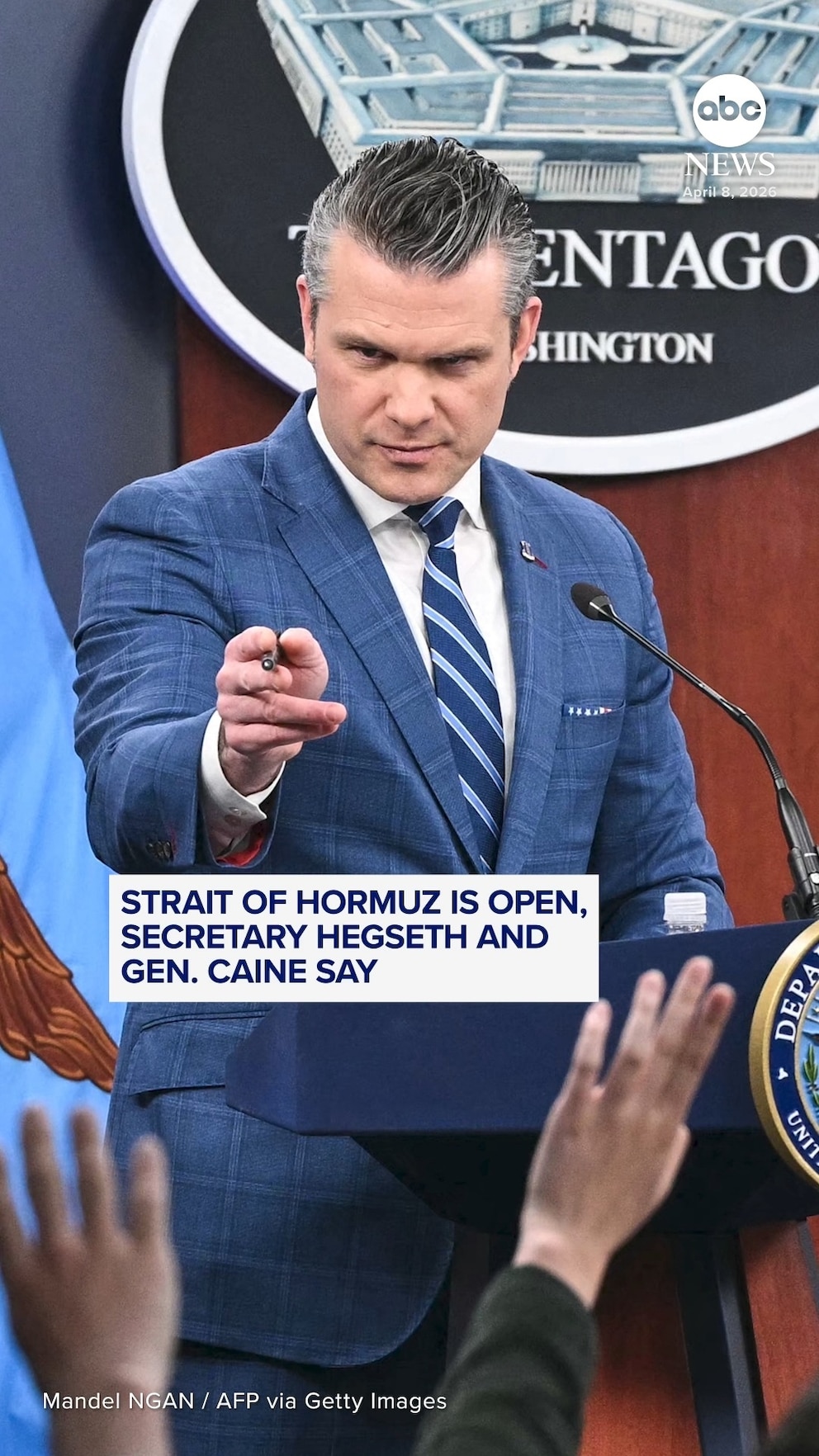 Secretary Pete Hegseth and Gen. Dan Caine, the chairman of the Joint Chiefs of Staff, told reporters that the Strait of Hormuz has reopened.