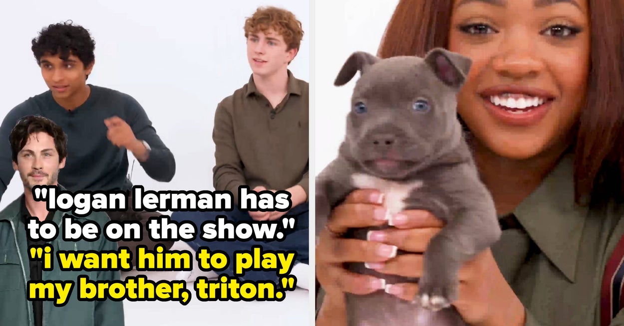 "Percy Jackson" Stars Walker Scobell, Leah Sava Jeffries, And Aryan Simhadri Play With Puppies While Answering Questions